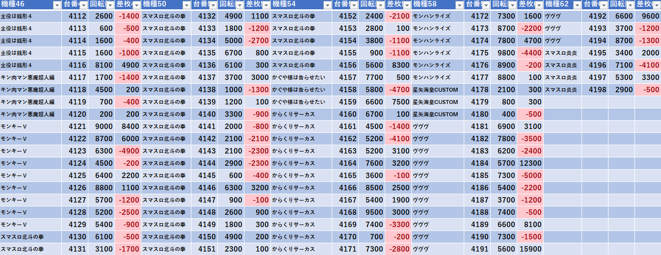 ホールの出玉データのまとめ。 たまに機種の事も語ったりします。 ツイッターもよろしくお願いします。