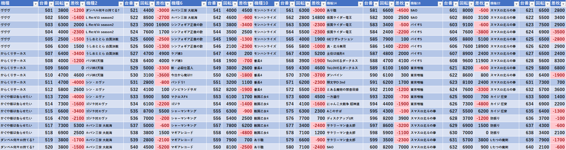 ホールの出玉データのまとめ。 たまに機種の事も語ったりします。 ツイッターもよろしくお願いします。